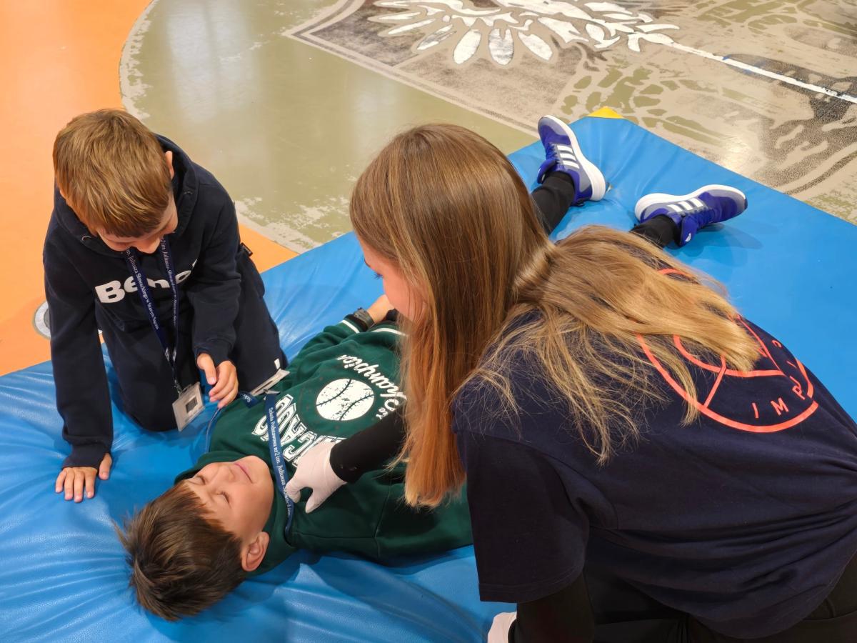 Podczas spotkania z uczniami klas 3 i 4 nasi licealiści podzielili się swoją wiedzą i umiejętnościami, pokazując, jak prawidłowo reagować w sytuacjach zagrożenia życia. Młodsi koledzy i koleżanki mieli okazję nauczyć się m.in.: