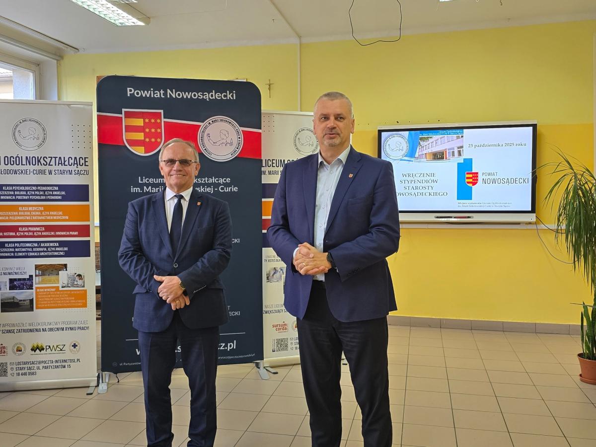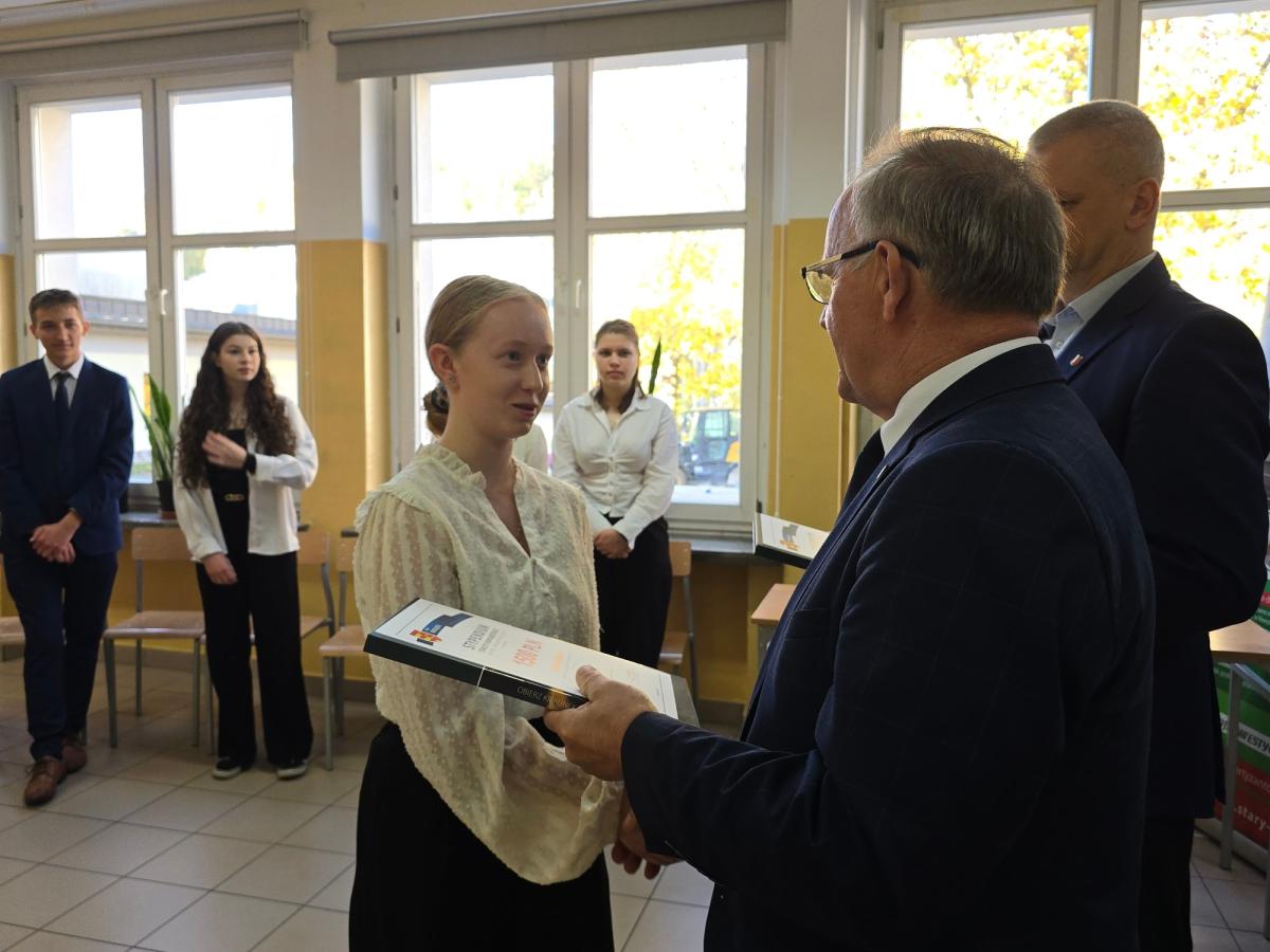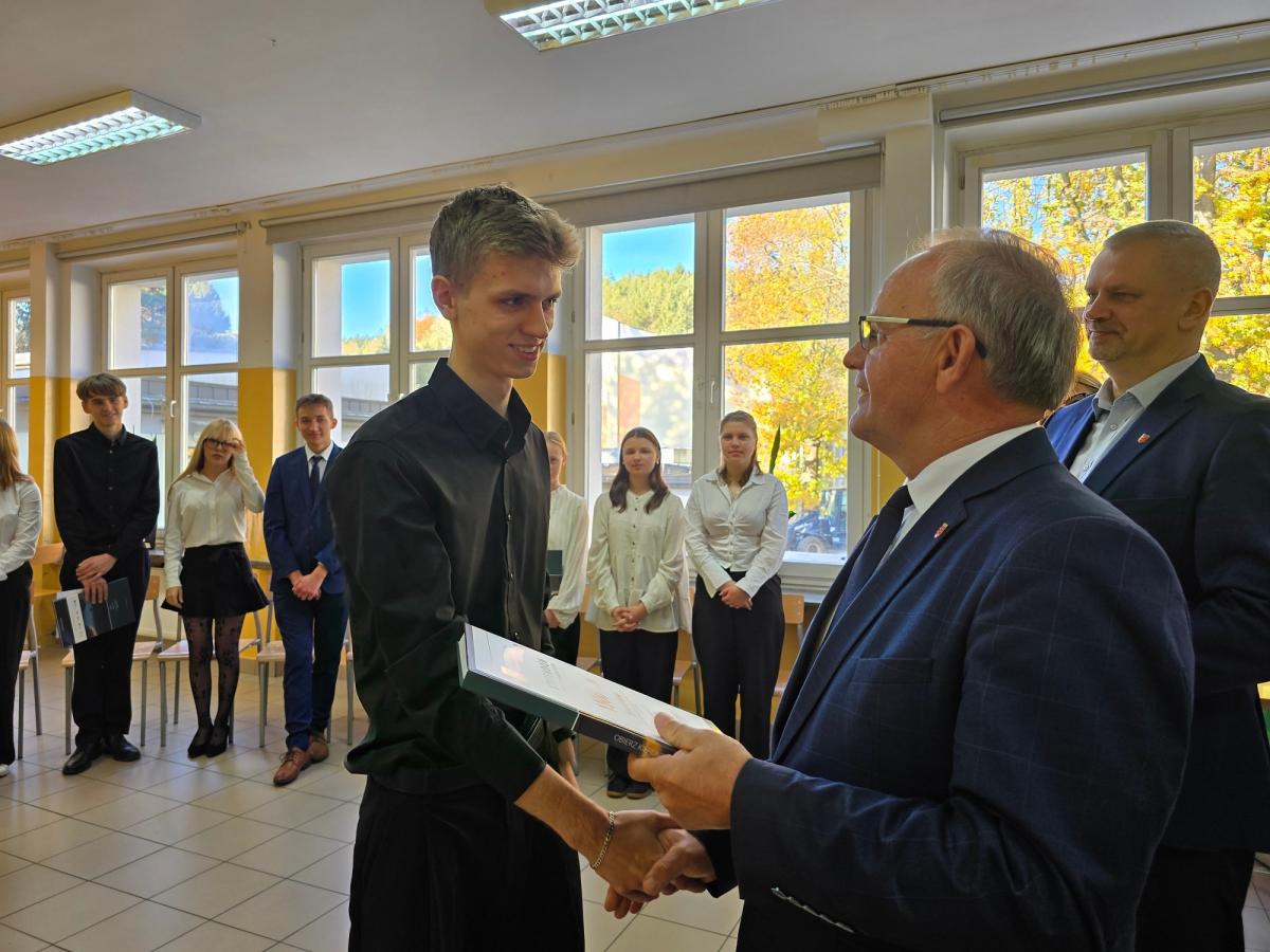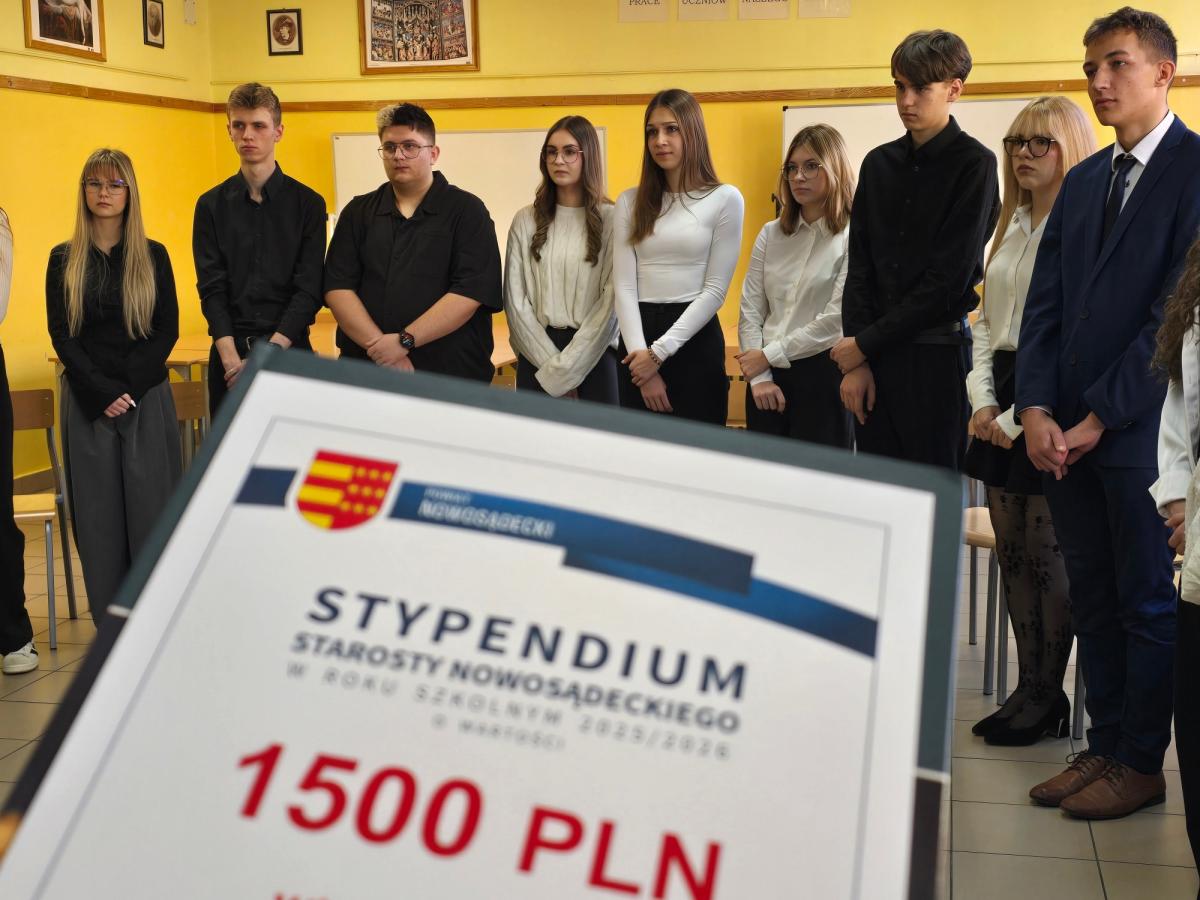 Stypendia wręczył Wicestarosta Nowosądecki pan Antoni Koszyk gratulując uczniom znakomitych wyników w nauce oraz aktywności na rzecz społeczności szkolnej.