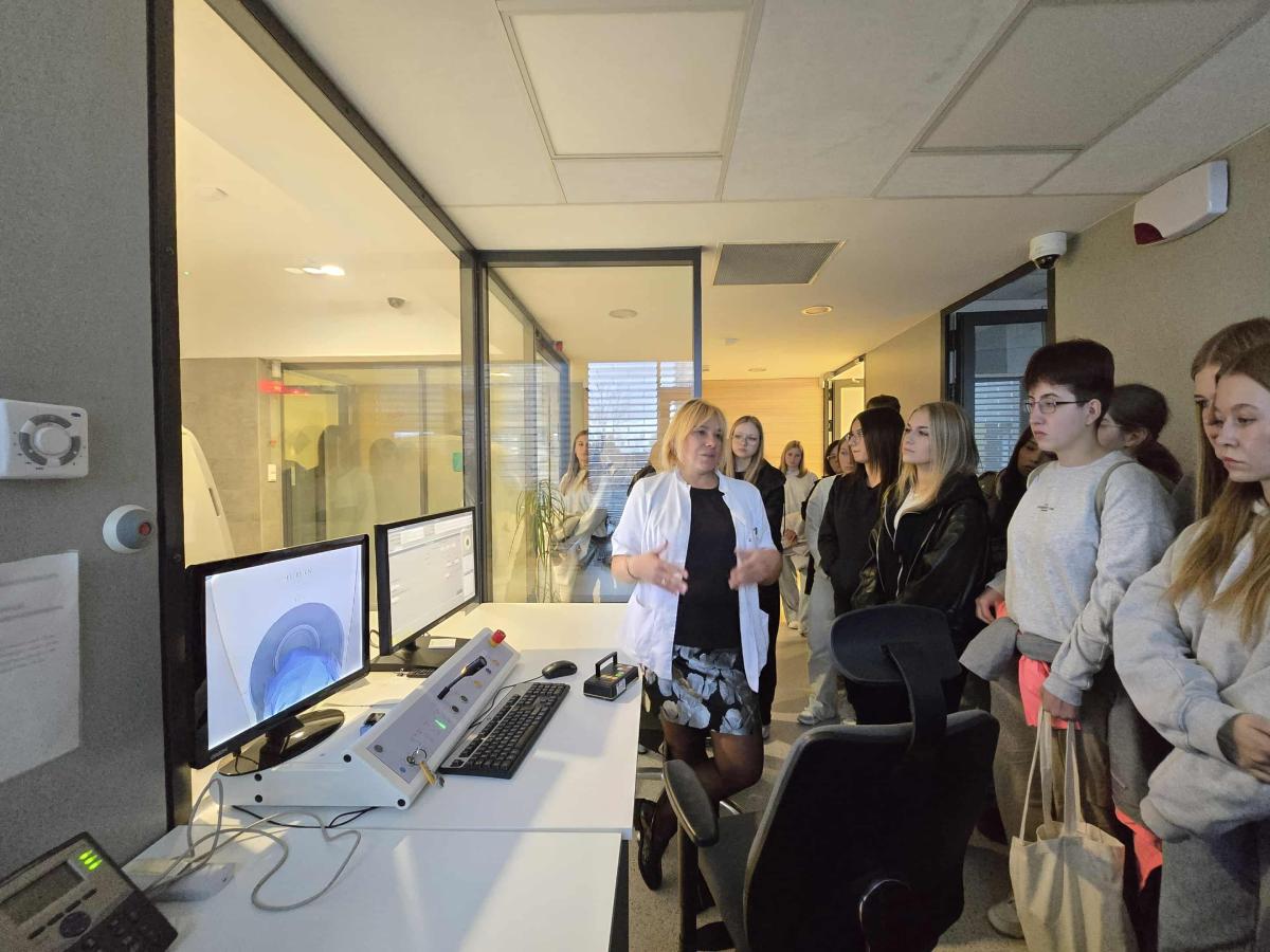 Ale to nie wszystko! W trakcie wizyty uczniowie mieli również okazję poznać, jak działa cała infrastruktura medyczna związana z radiochirurgią, jak dobiera się odpowiednią metodę leczenia oraz jakie wyzwania wiążą się z codzienną pracą w takim centrum. Zajęcia z zakresu medycyny były prowadzone przez najwyższej klasy specjalistów, którzy nie tylko przekazali ogromną dawkę wiedzy teoretycznej, ale również podzielili się doświadczeniem, jak wygląda życie w zawodzie lekarza i technika medycznego. Uczniowie dowiedzieli się, jak ściśle współpracują ze sobą lekarze, fizycy medyczni i inżynierowie, by zapewnić pacjentom najlepszą opiekę.