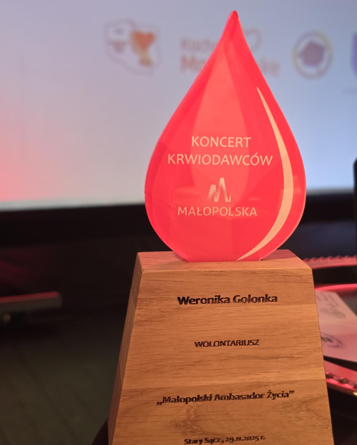 29 listopada 2025 roku nasze wspaniałe wolontariuszki, Weronika Chlebek i Weronika Golonka, zostały wyróżnione podczas 7. Gali Krwiodawstwa statuetką „Małopolski Ambasador Życia".