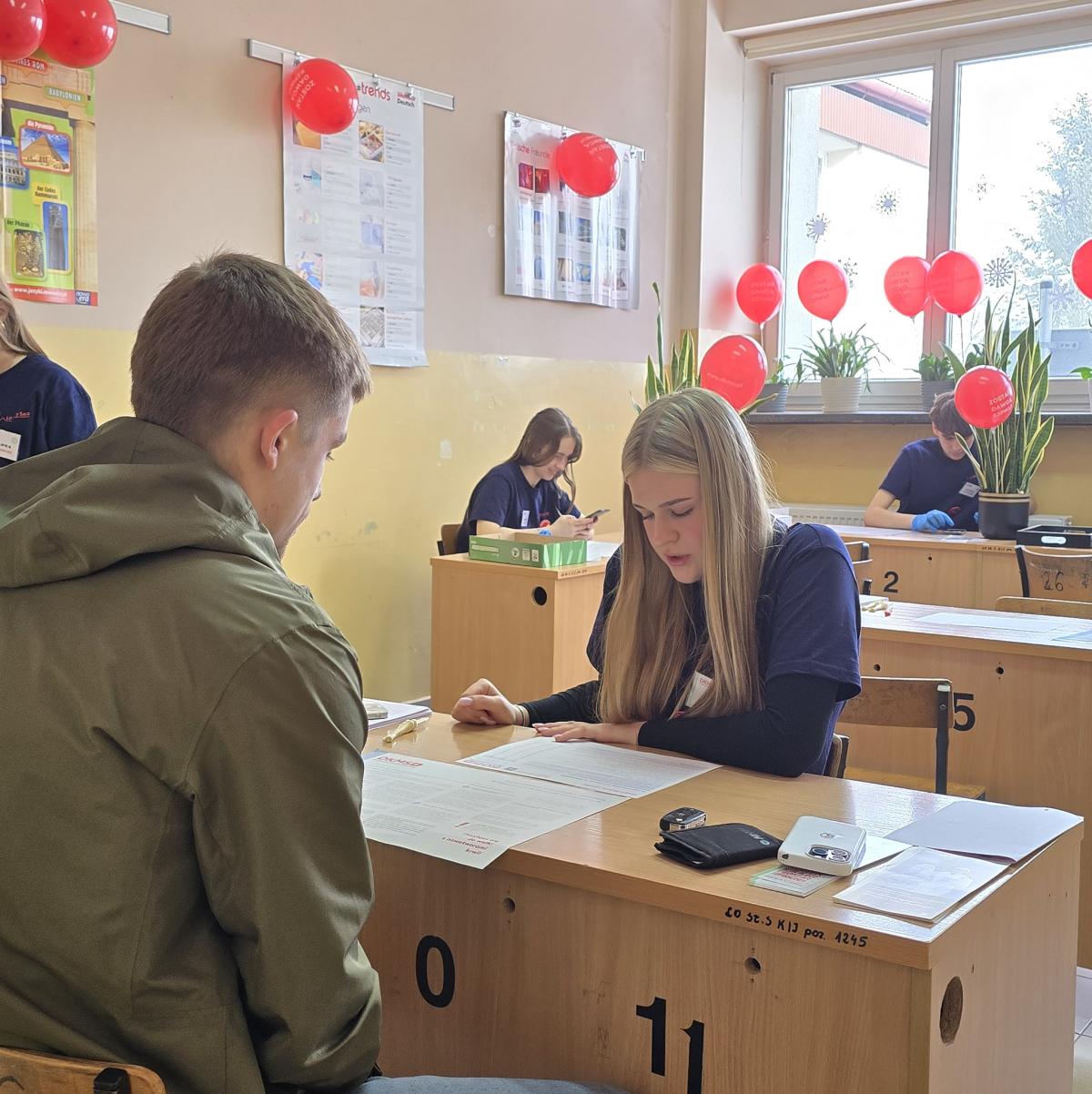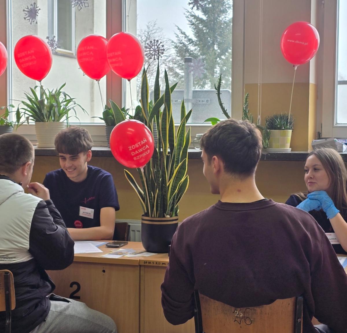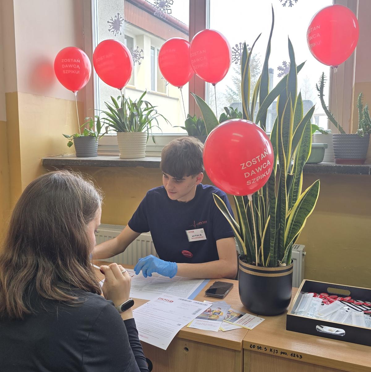 W murach szkoły odbyła się akcja „Komórkomania”, zorganizowana we współpracy z Fundacją DKMS Polska dla 13-miesięcznego Brunia z Ptaszkowej – chłopca, który dziś najbardziej na świecie potrzebuje swojego „bliźniaka genetycznego”, dawcy szpiku kostnego. Przez pięć godzin szkolne korytarze wyglądały inaczej niż zwykle. Nie było pośpiechu między lekcjami ani rozmów o sprawdzianach. Były rozmowy o życiu, o nadziei i o odpowiedzialności za drugiego człowieka. Uczniowie, nauczyciele, absolwenci oraz mieszkańcy Starego Sącza zatrzymywali się na chwilę — czasem tylko na kilka minut — aby zarejestrować się w bazie potencjalnych dawców.