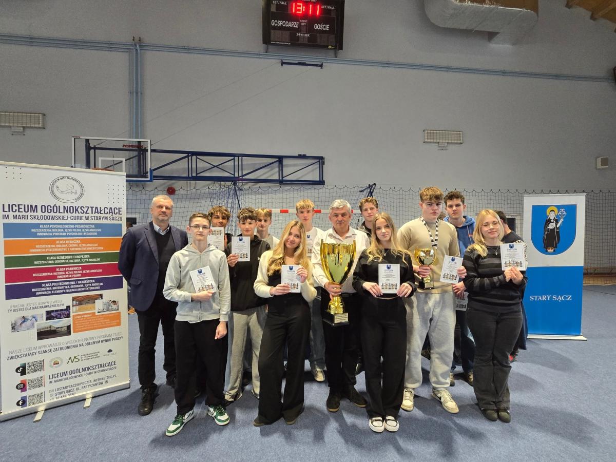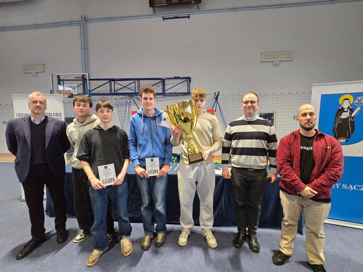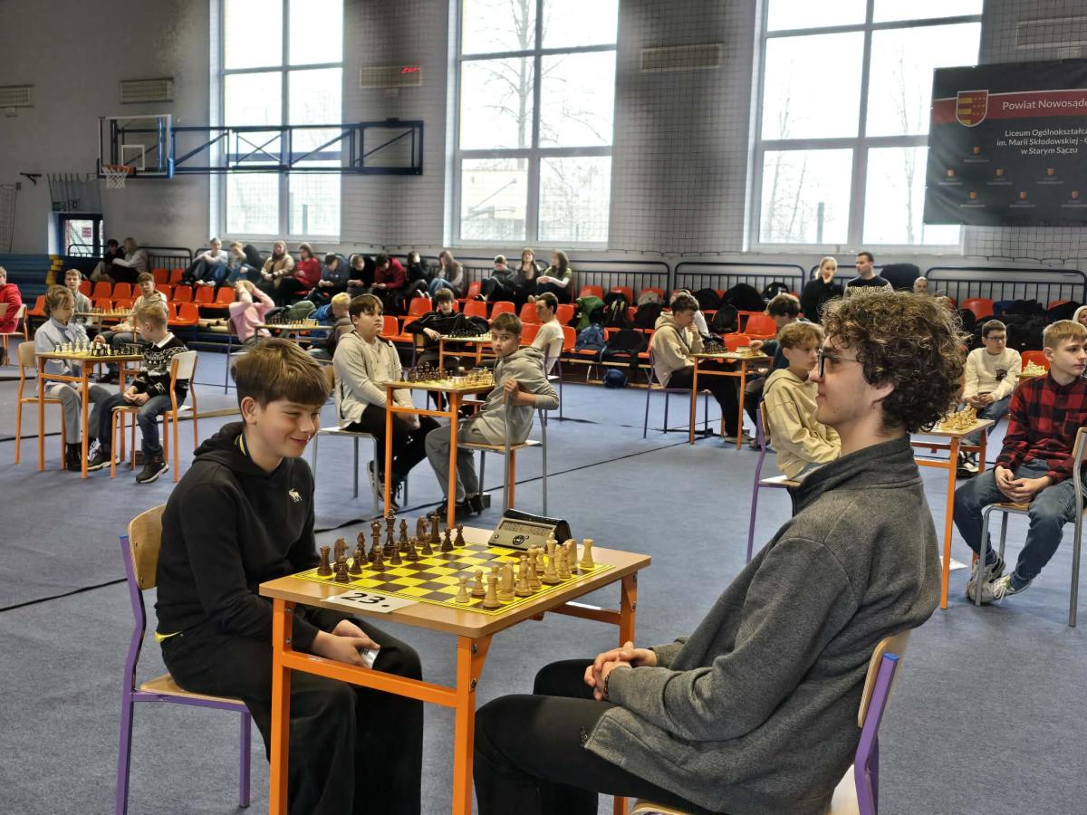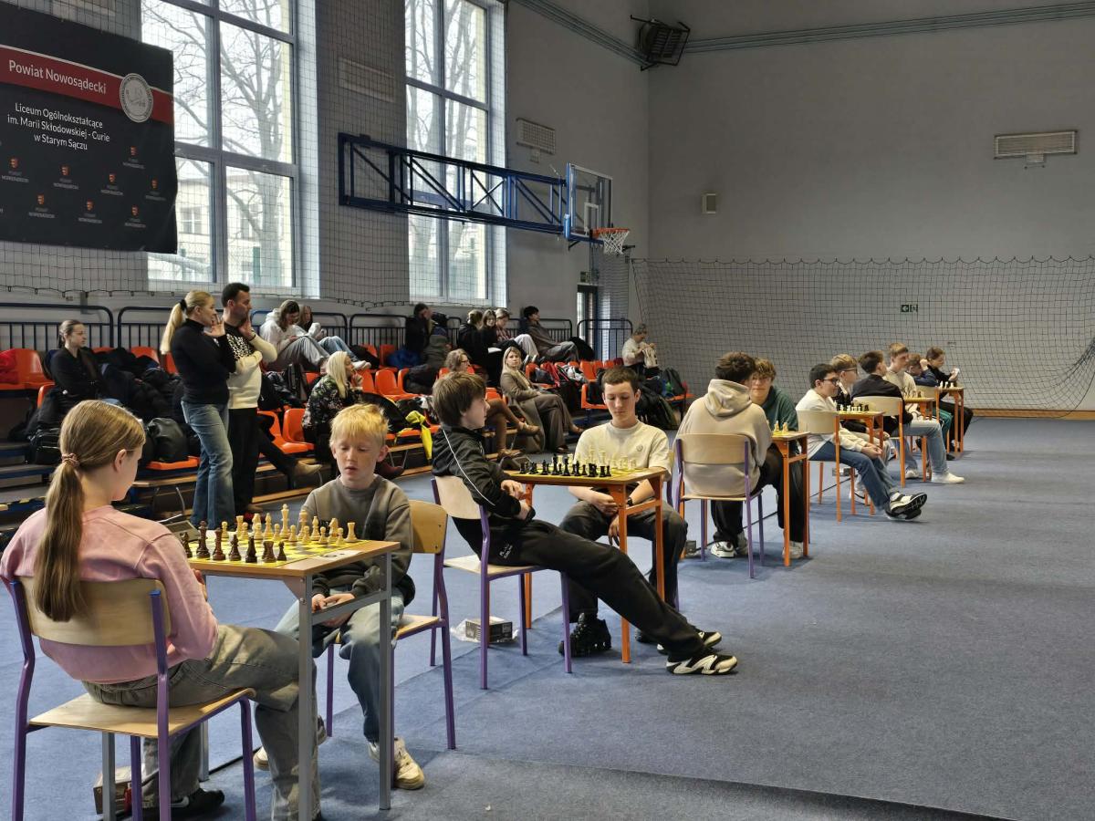 Dnia 27 marca 2026 r. w naszym liceum odbyły się V Szachowe Mistrzostwa Gminy Stary Sącz. Współorganizatorem Mistrzostw Szachowych jest nasze liceum, którego organem prowadzącym jest Starostwo Powiatowe w Nowym Sączu. Wystartowało 80 zawodników ze szkół podstawowych i średnich. Turniej został rozegrany systemem szwajcarskim na dystansie 9 rund i czasem po 10 min na zawodnika. W kategorii szkół średnich zwyciężył Kamil Buchman z klasy 4b, który zdobył 8,5 pkt. Drugi był Szumski Krystian a trzeci Tokarczyk Dawid z Zespołu Szkół. W kategorii szkół podstawowych zwyciężył Trzajna Arkadiusz przed Kacprem Jabłońskim i Lwem Shapotkovskym. W kategorii drużynowej po raz piąty z rzędu zwyciężyło nasze liceum w składzie: Kamil Buchman, Piotr Janik, Paweł Jankisz i Bartłomiej Cebula. Naszę szkołę reprezentowało 17 szachistów: Kamil Buchman, Bartłomiej Cebula, Kacper Tokarczyk, Mikołaj Kałuziński, Krystian Pierzchała, Dawid Plata, Paweł Jankisz, Piotr Janik, Marcin Obrzud, Nikodem Krzak, Sofia Diachenko, Julia Konopka, Kacper Kurzawa, Kacper Migacz, Karol Kołbon, Kinga Pierzchała, Jakub Stachoń. Nad przebiegiem turnieju czuwali ks. Tomasz Starzec i Piotr Widła.