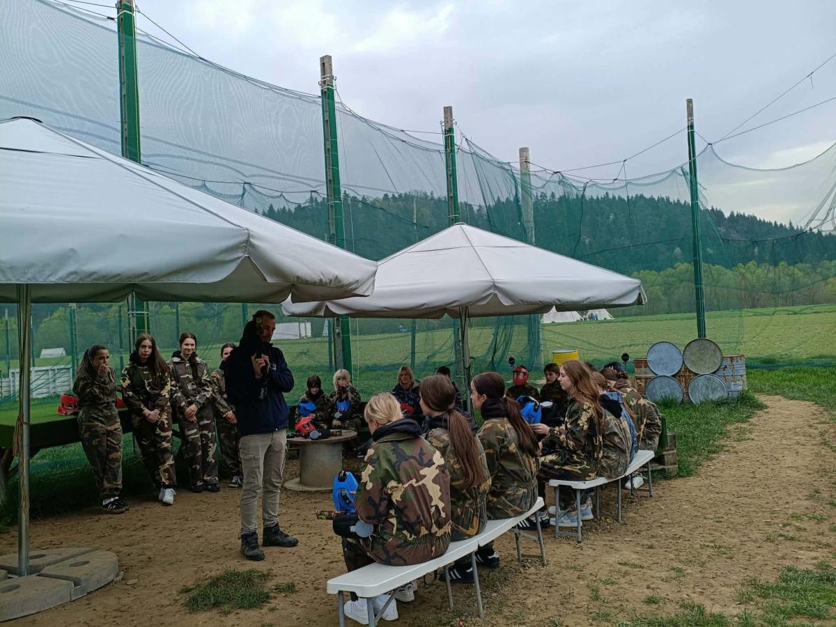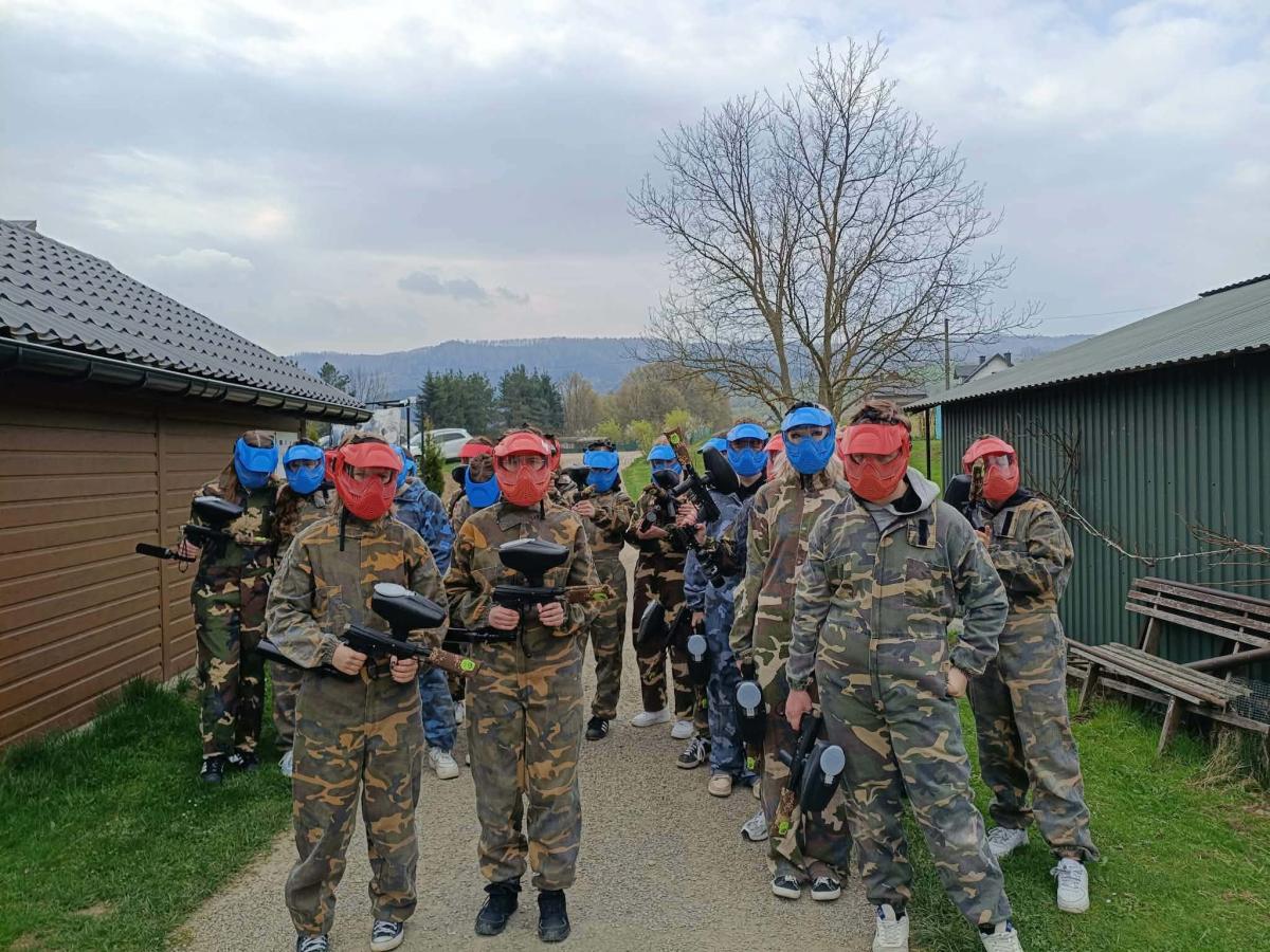 Głównym punktem programu była emocjonująca gra terenowa – paintball, która dostarczyła uczestnikom wielu wrażeń i zdrowej dawki adrenaliny. Uczniowie, podzieleni na zespoły, mieli okazję sprawdzić swoje umiejętności strategicznego myślenia, refleks oraz komunikację w grupie. Rywalizacja przebiegała w duchu fair play, a dobra zabawa towarzyszyła wszystkim przez cały czas trwania rozgrywek.
