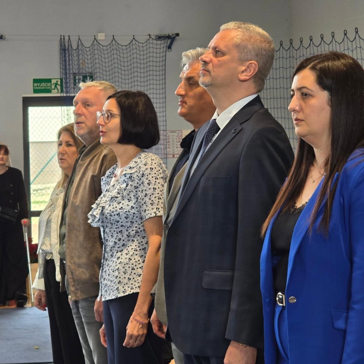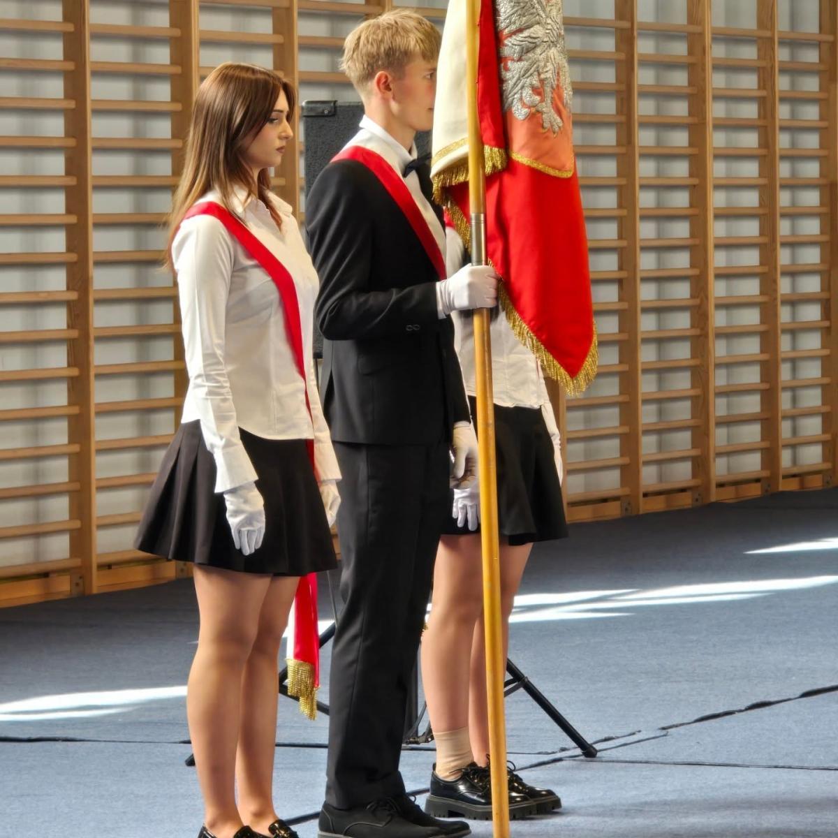 Część oficjalna uroczystości odbyła się pod kierunkiem pana Kamila Głębockiego, który czuwał nad jej przebiegiem i podniosłym charakterem. Wydarzenie poprowadzili: przewodnicząca szkoły Aleksandra Mułka oraz Alan Kołbon, a o oprawę nagłośnienia zadbał pan Tomasz Łabuda, dzięki czemu każdy moment wybrzmiał wyjątkowo.