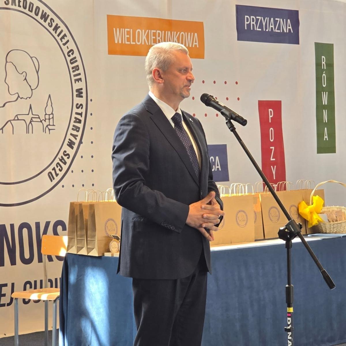 Pan Dyrektor Krzysztof Szewczyk skierował do maturzystów słowa pełne życzliwości i wiary w ich możliwości. Życzył im jak najlepszych wyników na egzaminie dojrzałości oraz odwagi w realizowaniu marzeń. Podkreślił, że choć dziś opuszczają szkolne mury, na zawsze pozostaną częścią tej społeczności, a zdobyta wiedza, relacje i doświadczenia będą dla nich drogowskazem w dalszym życiu.