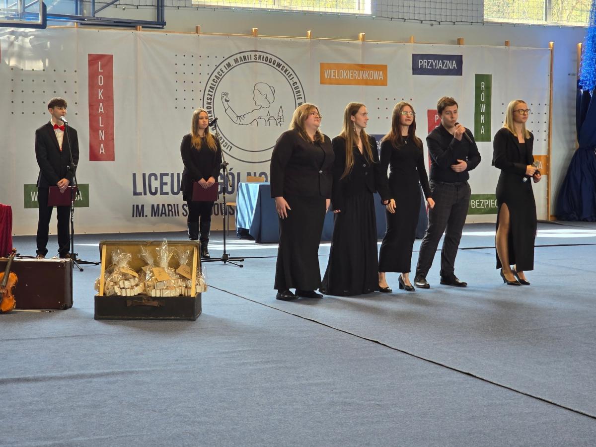 Niezwykle poruszającym elementem uroczystości był program artystyczny przygotowany przez uczniów: Ilonę Stawiarską, Alana Kołbona, Gabrielę Dominik, Wiktorię Kołodziej, Joannę Luberdę, Kamilę Kurnytę, Remigiusza Myjaka oraz Kacpra Jabłońskiego pod opieką pani Beaty Skoczeń i pani Anety Mamali. Była to symboliczna podróż „pociągiem relacji Przeszłość–Przyszłość”, który zatrzymał się na stacji „LO” – miejscu, gdzie wszystko się zaczęło.
