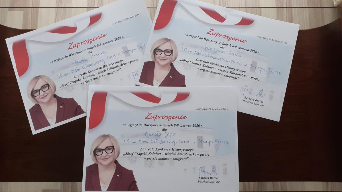 24 kwietnia w Zespole Szkól im. Józefa Tischnera w Starym Sączu miał miejsce finał Konkursu Historycznego „Józef Czapski. Żołnierz – więzień Starobielska – pisarz – artysta malarz - emigrant”. Inicjatorką i główną organizatorką konkursu była Pani Barbara Bartuś, Poseł na Sejm RP.