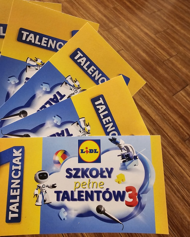 W czasie trwania akcji „Szkoły Pełne Talentów” za dokonane zakupy w Lidlu otrzymacie Talenciaki. Owe punkty będziecie mogli przekazać naszej szkole, a my wymienimy je na sprzęt dla Was. Aby otrzymać Talenciaka, musimy spełnić pewne warunki: minimalna wartość zakupów to 50 zł, a wśród nich musi się znaleźć przynajmniej jeden świeży owoc lub warzywo. Jednocześnie część produktów została wyłączona z promocji, czyli ich wartość nie wlicza się do osiągnięcia kwoty minimalnej.