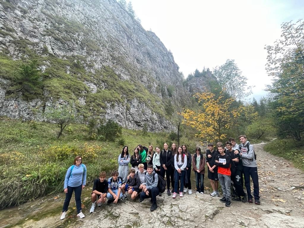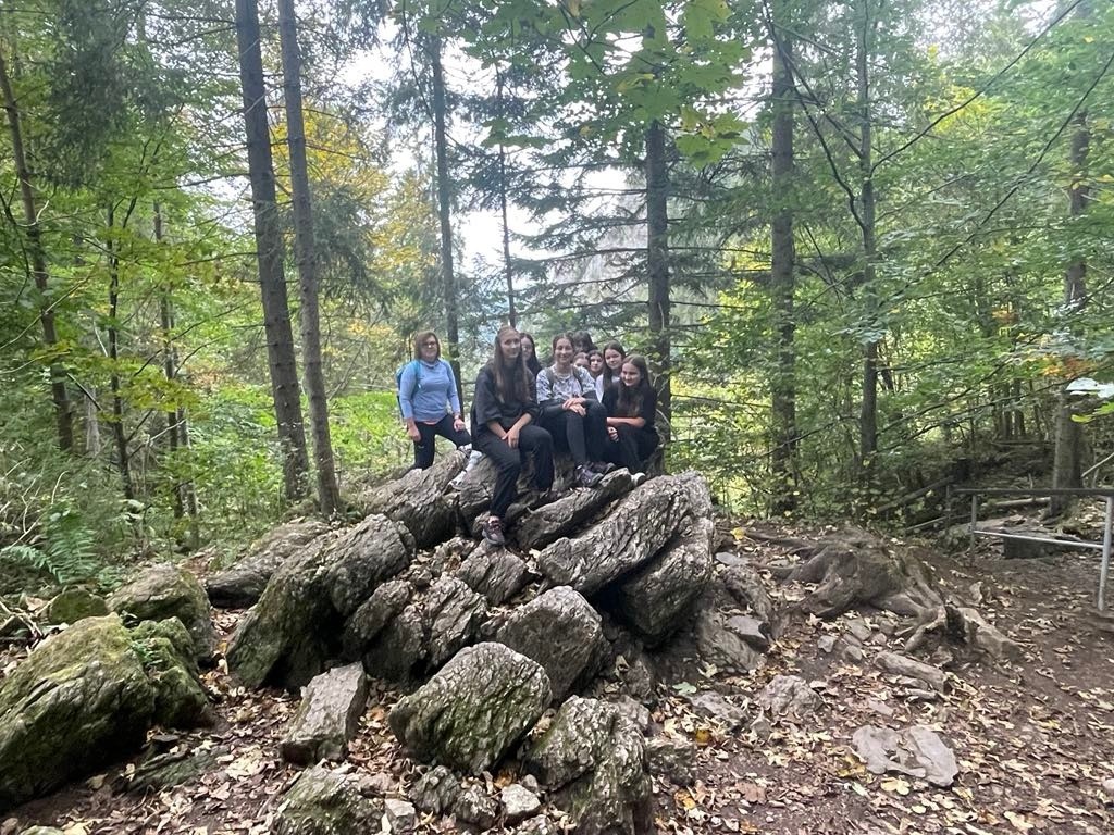 27 września 2024 roku klasa 1 B wraz z wychowawczynią panią Anetą Ząbek i panią Beatą Skoczeń wzięła udział w wycieczce integracyjnej do Wąwozu Homole w miejscowości Jaworki koło Szczawnicy. Wąwóz Homole to jedno z najpiękniejszych i najbardziej malowniczych miejsc w Pieninach. Po krótkiej wędrówce dotarliśmy do Szałasu Bukowiński, gdzie uczniowie mieli chwilę czasu na odpoczynek, zabawę oraz grill. Siedząc na tarasie podziwialiśmy panoramę Małych Pienin i zajadaliśmy się przepysznymi kiełbaskami oraz oscypkami z grilla. To był wspaniały dzień .