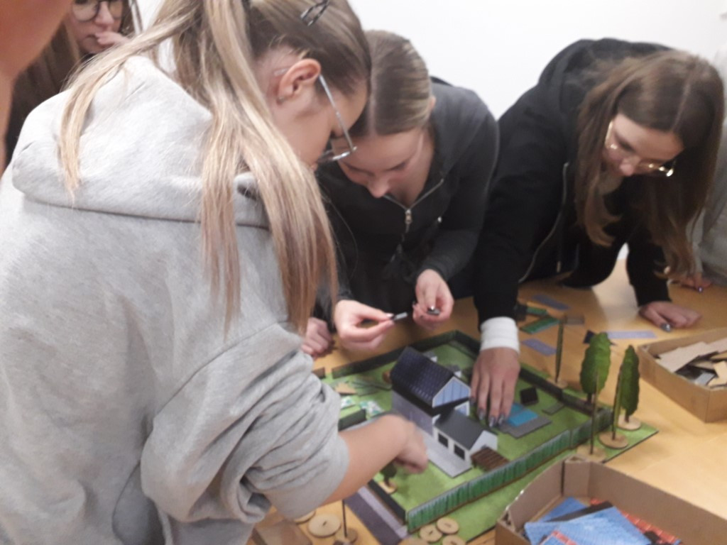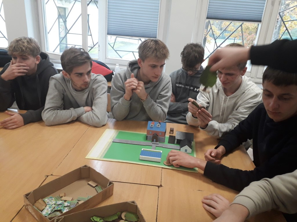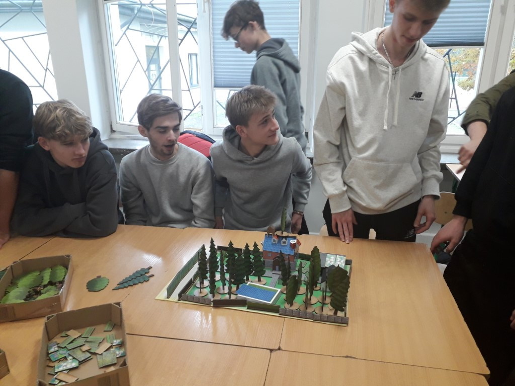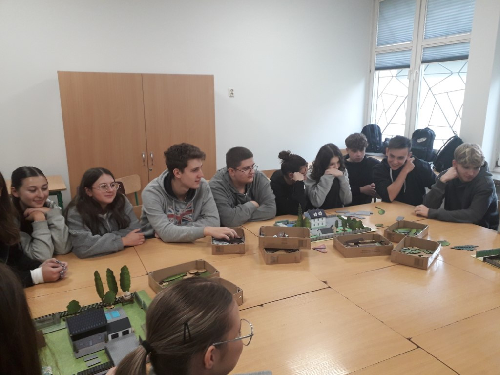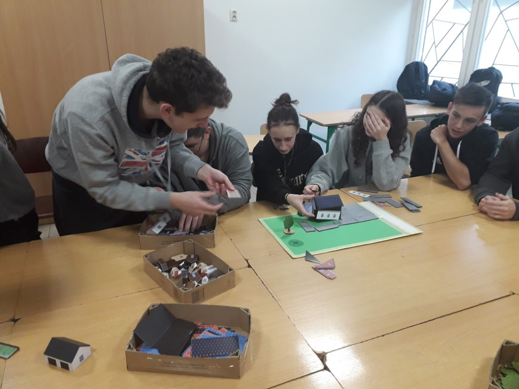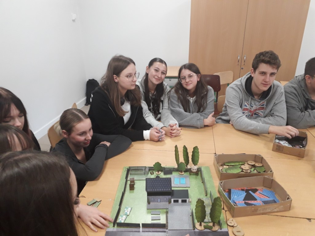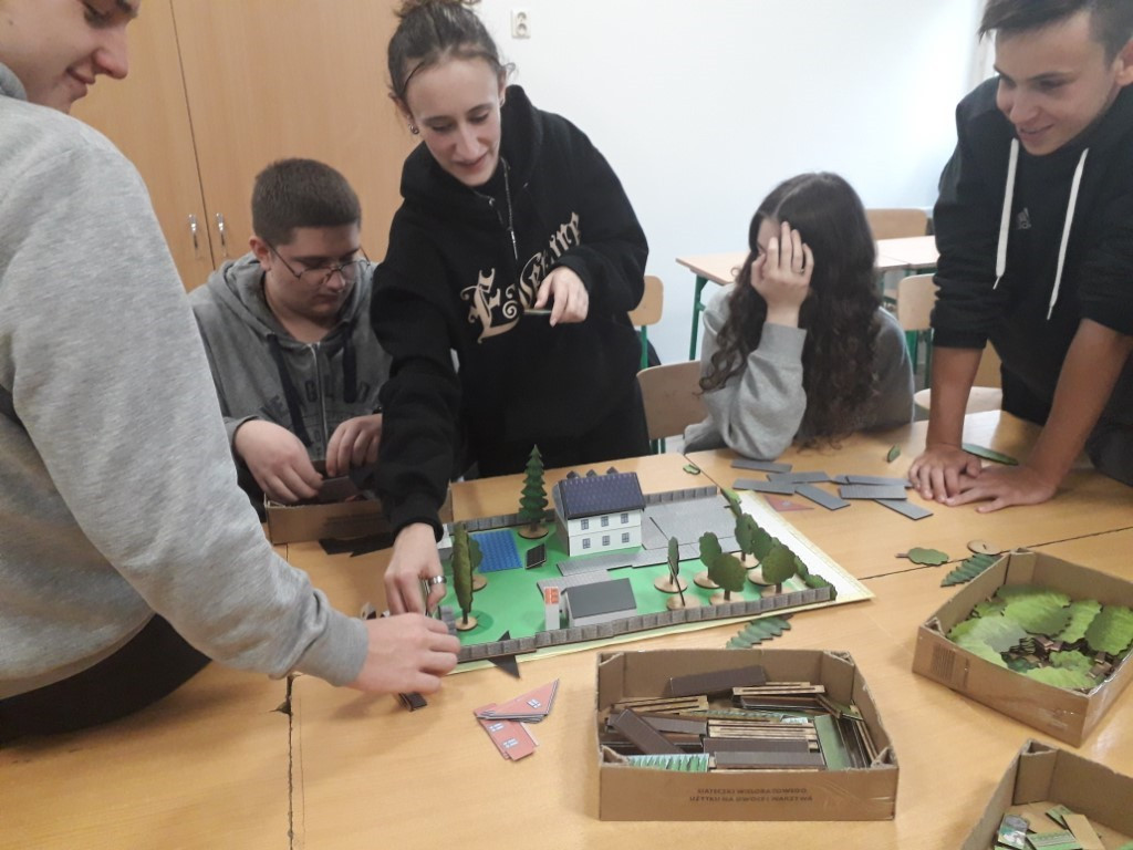 Dnia 23 października w klasie 3b zostały przeprowadzone warsztaty na temat „Zintegrowany rozwój z wykorzystaniem naturalnych źródeł energii”. Zajęcia poprowadziła Pani Anna Świsterska z Zespołu Parków Krajobrazowych Województwa Małopolskiego. Klasa została podzielona na grupy, reprezentujące różne interesy i miała zaprojektować plan rozwoju małej miejscowości. Po burzliwej dyskusji i zawarciu wielu kompromisów udało się przedstawić spójny plan zaakceptowany przez wszystkich uczestników zajęć.