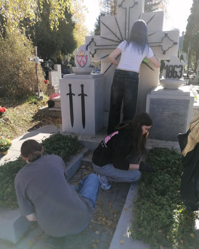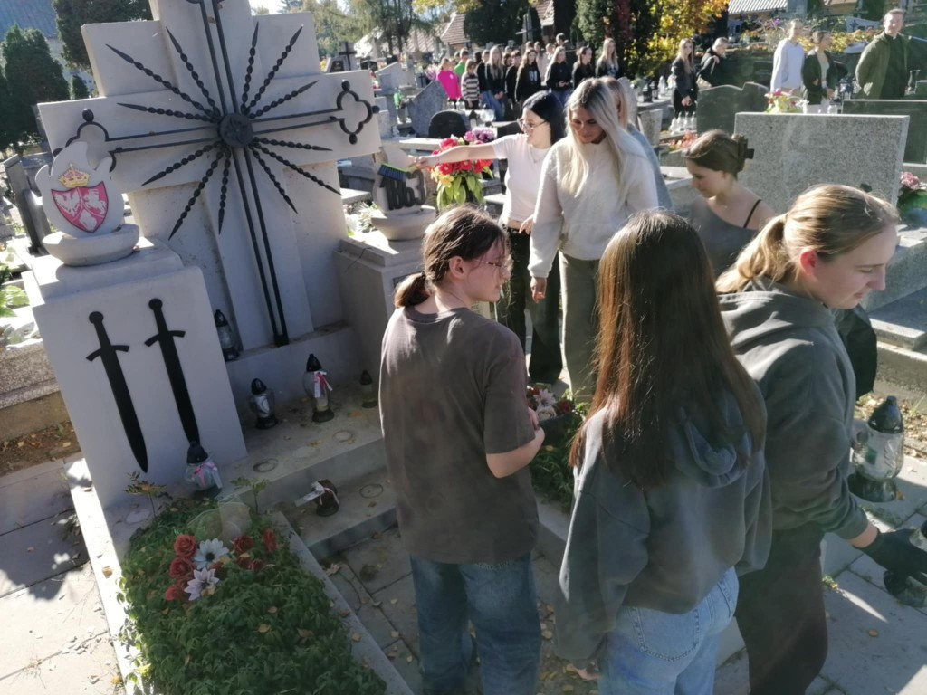 Zbliżają się dni, w których w szczególny sposób pamiętamy o zmarłych, porządkujemy groby i zapalamy znicze. Wspominamy zarówno naszych bliskich jak i tych, którzy zapisali się w historii naszego kraju. Pamięć o nich jest wyrazem szacunku dla ich życia i dokonań. Uczennice klasy 4a (wraz z Opiekunami URS p. Martą Lelito i p. Kamilem Głębockim) w tygodniu poprzedzającym dzień Wszystkich Świętych udali się na pobliski starosądecki Cmentarz w celu posprzątania grobu Powstańców Styczniowych, którym opiekują się do wielu lat. W imieniu całej społeczności szkolnej w ciszy i zadumie zapaliły znicze. Zobowiązały się również dbać o te ważne dla wszystkich miejsca w ciągu całego roku. Społeczność Liceum Ogólnokształcącego im. Marii Skłodowskiej-Curie w Starym Sączu przystąpiła kilka lat temu do akcji "Szkoła pamięta" i systematycznie kontynuujemy nasze działania. Celem akcji jest zwrócenie uwagi młodych ludzi na potrzebę pielęgnowania pamięci o bohaterach naszej wolności…