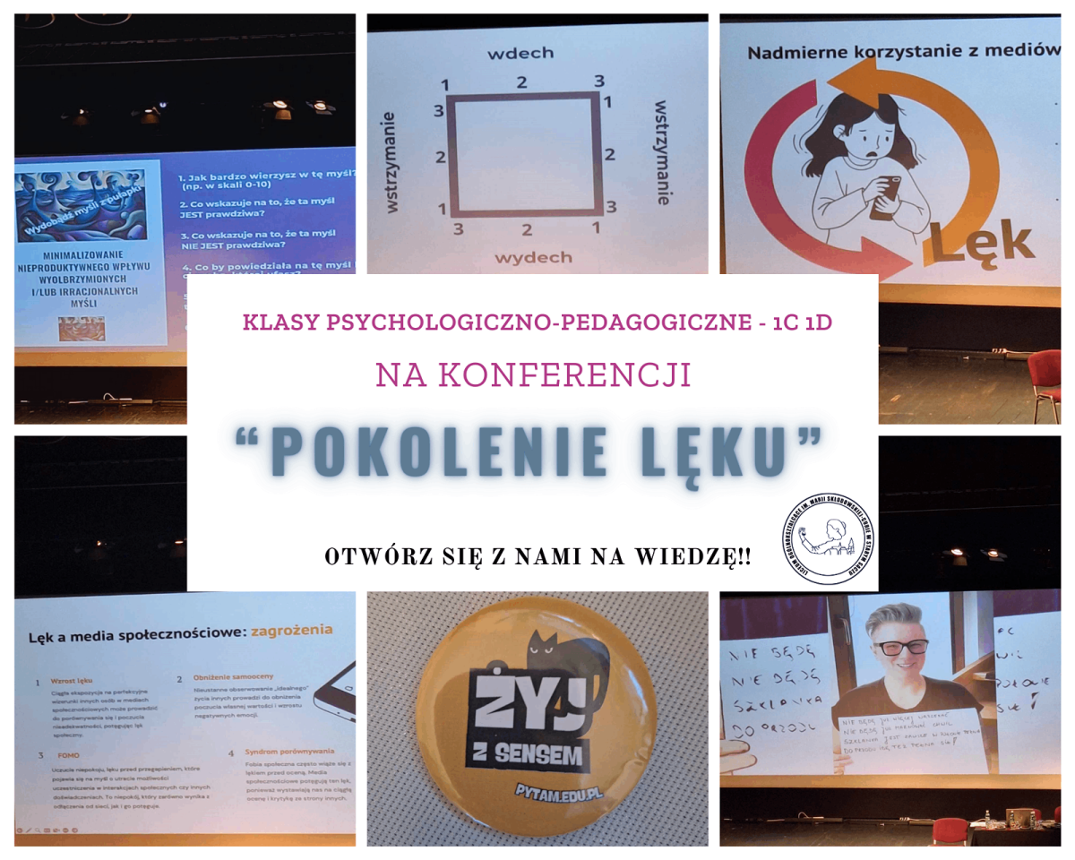 Uczniowie klas 1c i 2d o profilu psychologiczno-pedagogicznym 2 grudnia 2024 roku poszerzali swoją wiedzę na konferencji "Pokolenie lęku".