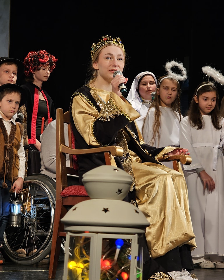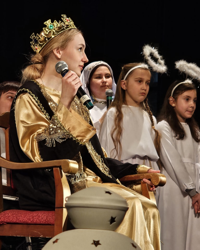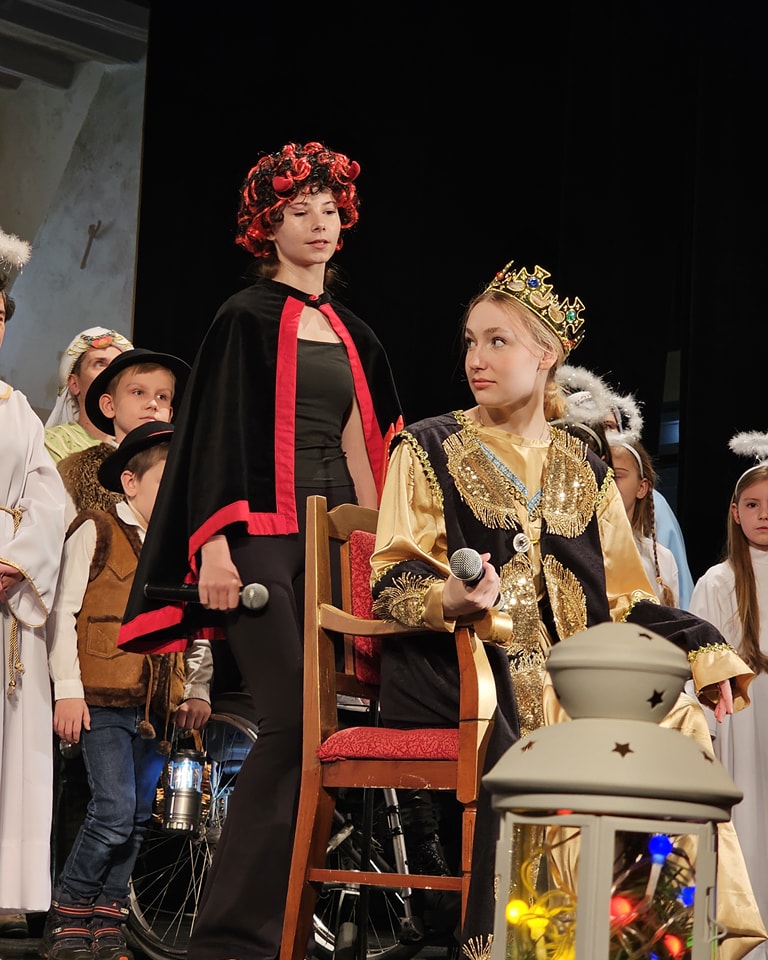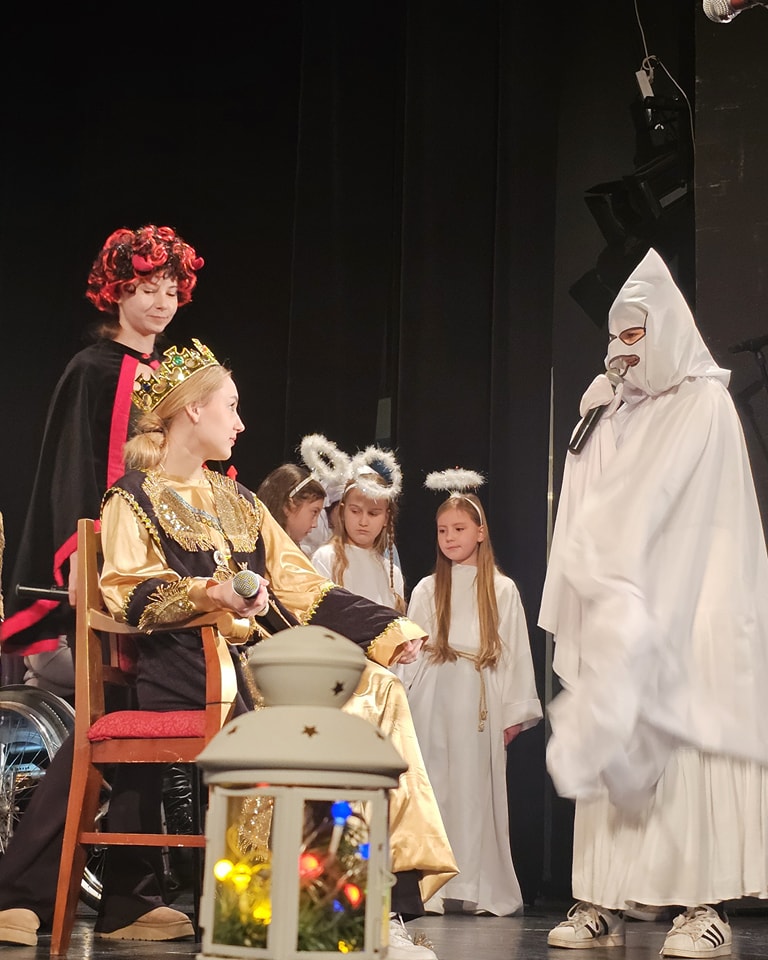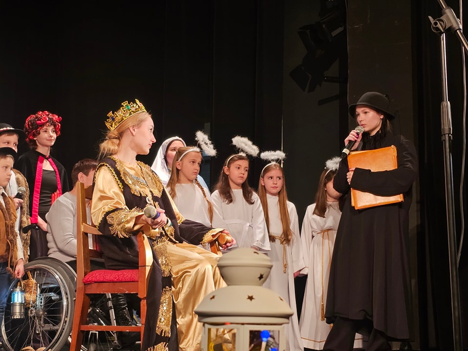5 stycznia 2025 roku uczennice klasy 2c: Klaudia Kołbon, Anna Najduch, Ewa Kowalik i Lilianna Sikora wzięły udział w wyjątkowym wydarzeniu! Na scenie, razem z Podopiecznymi Stowarzyszenia na Rzecz Osób Niepełnosprawnych Gniazdo, zaprezentowały widowisko "Otwórzmy Drzwi Kolędnikom".