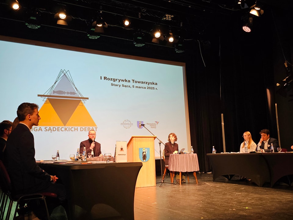 W dniu wczorajszym uczniowie naszego liceum w składzie: Marzena Gaździak, Ilona Stawiarska, Maciej Jop i Sebastian Tomecki zmierzyli się w debacie oksfordzkiej z uczniami Zespołu Szkół im. ks. prof. Józefa Tischnera w Starym Sączu w Kinie Sokół.