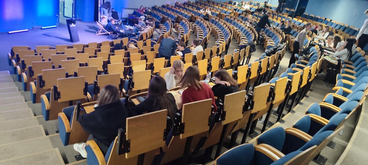 Tego dnia w siedzibie WSB w Nowym Sączu uczniowie uczestniczyli w drugim etapie projektu mającego formę zajęć warsztatowych, przeprowadzonych w formie Hekatonu, podczas których młodzi ludzie w małych, kilkuosobowych grupach opracowywali strategie wzrostu zainteresowania grup rówieśniczych danym tematem.