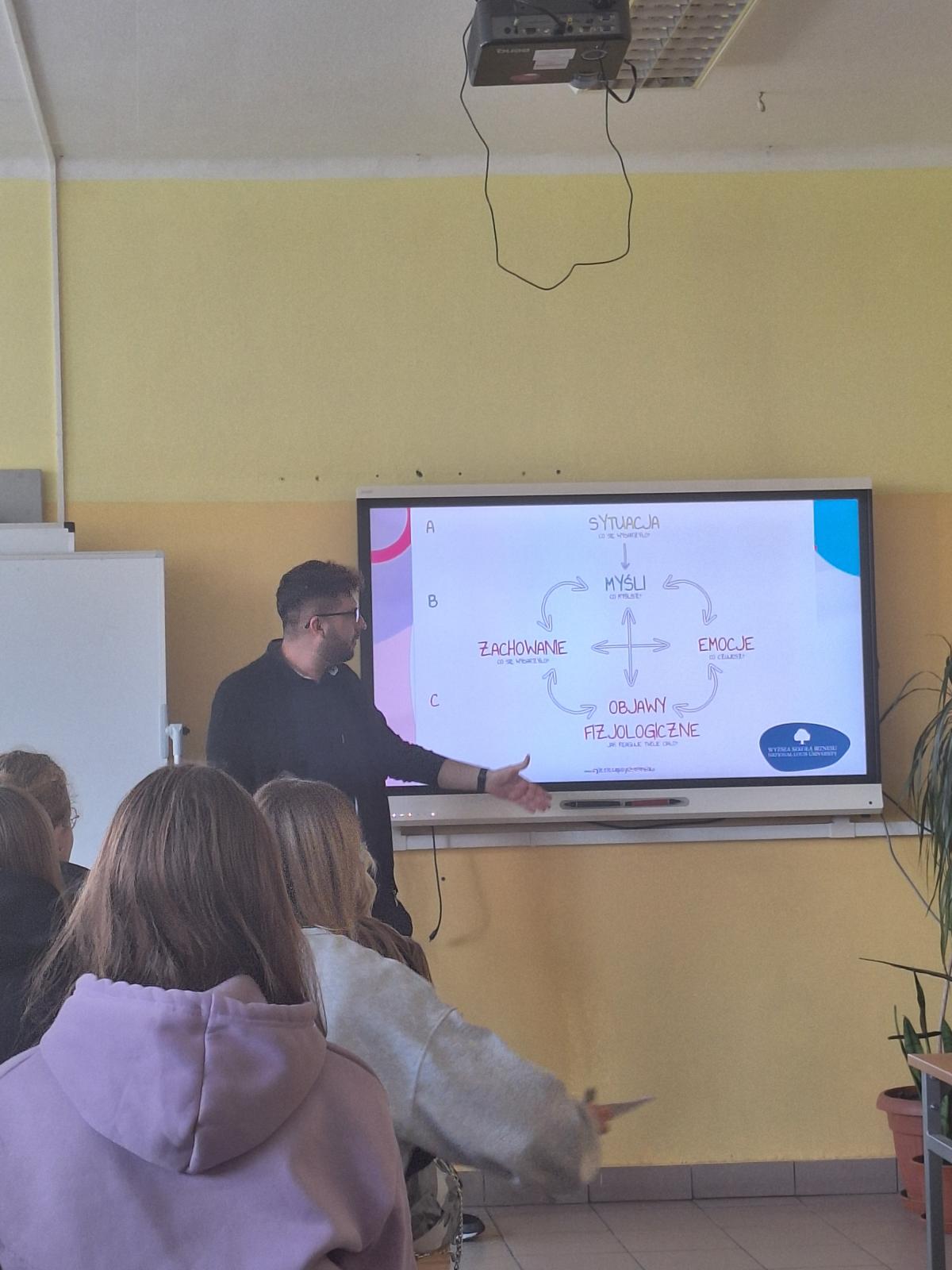 12.11. 2025 w naszej szkole gościliśmy Pana Artura Majchrzaka – psychologa oraz wykładowcę akademickiego związanego z Wyższą Szkołą Biznesu WSB-NLU w Nowym Sączu, który przeprowadził dla uczniów zajęcia dotyczące radzenia sobie z lękiem.